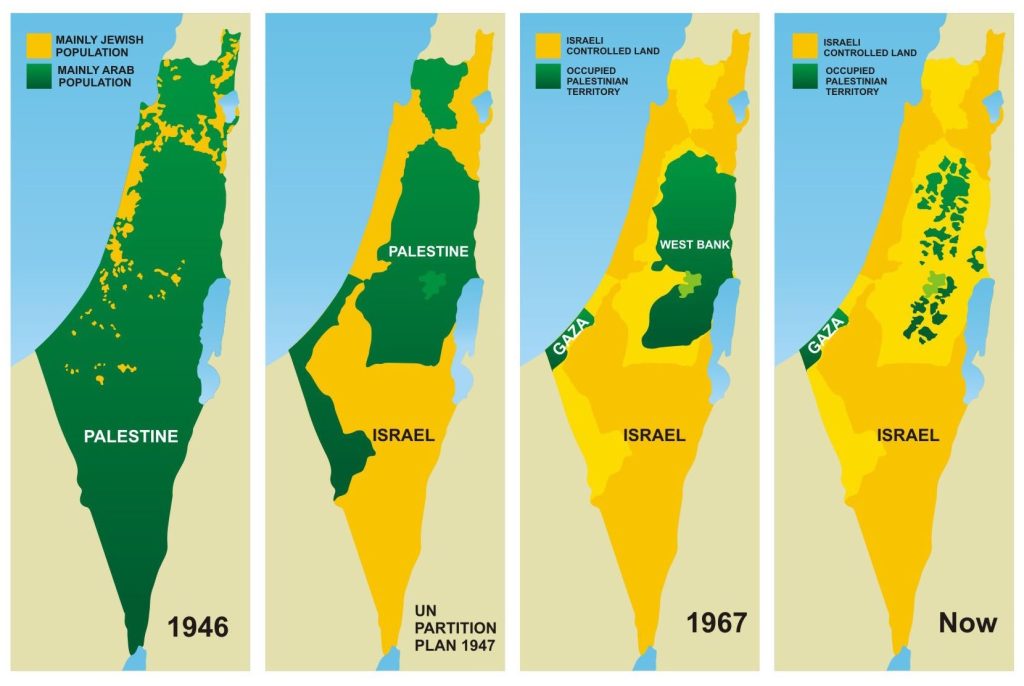 In the 1940s, things really began to change. Driven by the urge of Zionism and to escape the rise of fascism in Europe, Jewish immigration had increased in the decades between World War I and II. Zionists were seeking a state of their own, a “Jewish state”. As the urge became stronger, it became militant. Armed groups were formed and initiated armed conflict to establish the new state. The native Palestinians resisted but Zionism prevailed, the new state was declared, and hundreds of thousands of native Palestinians were displaced and became refugees.